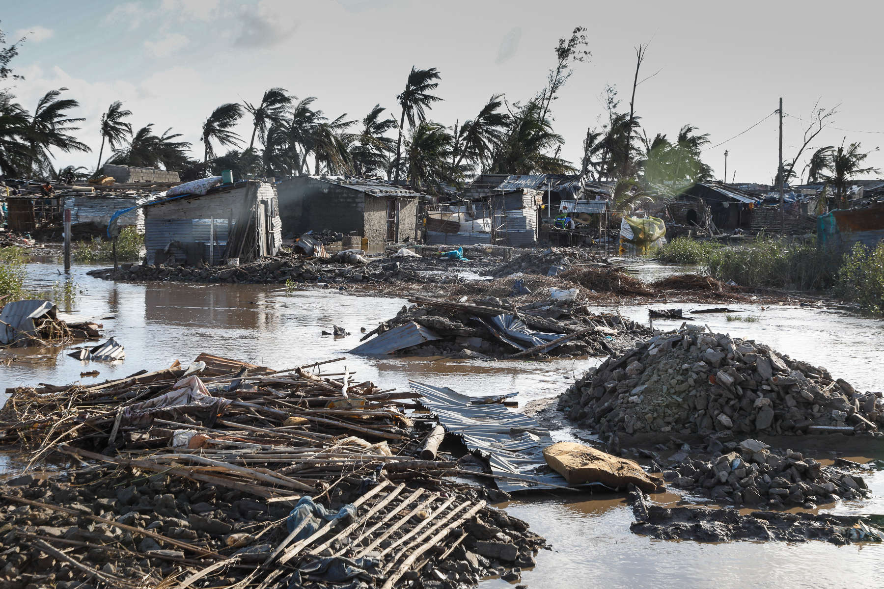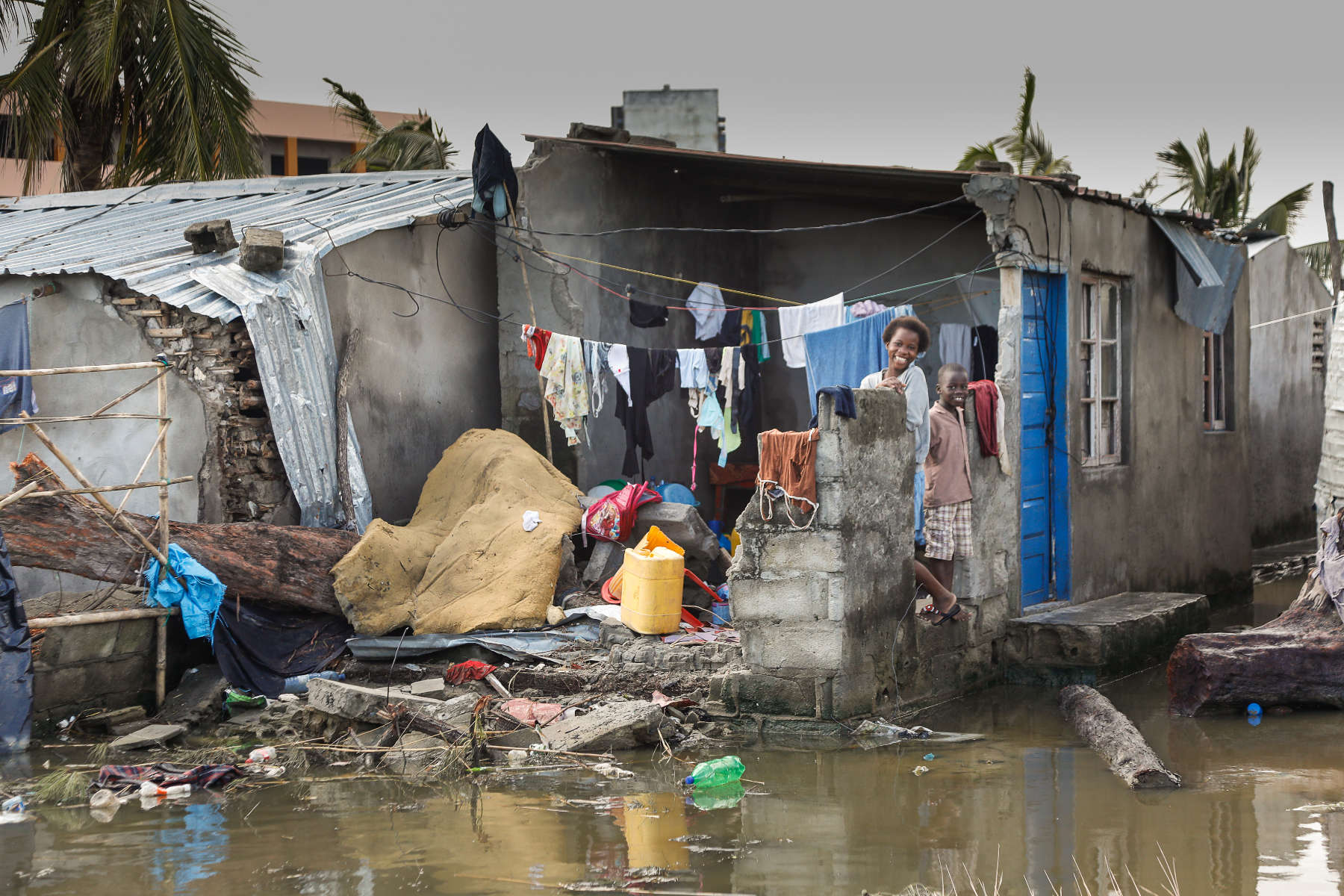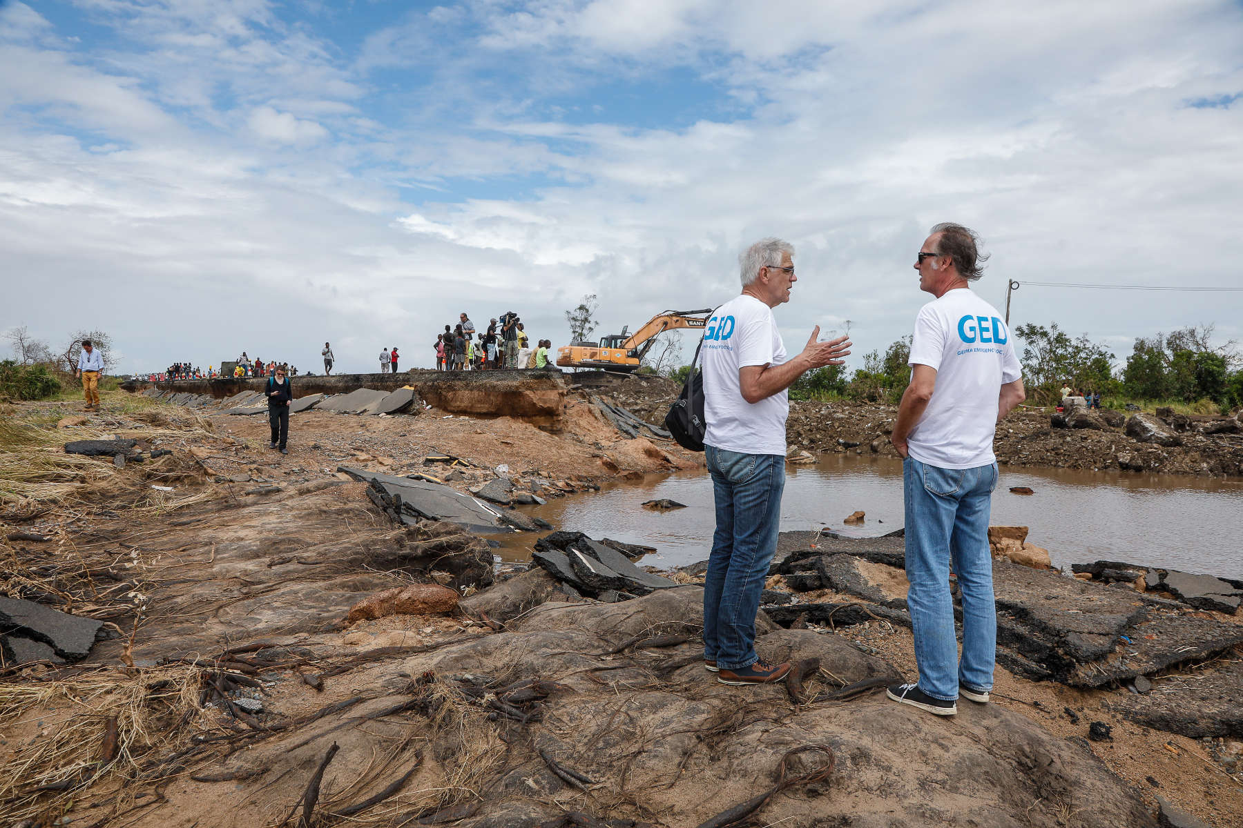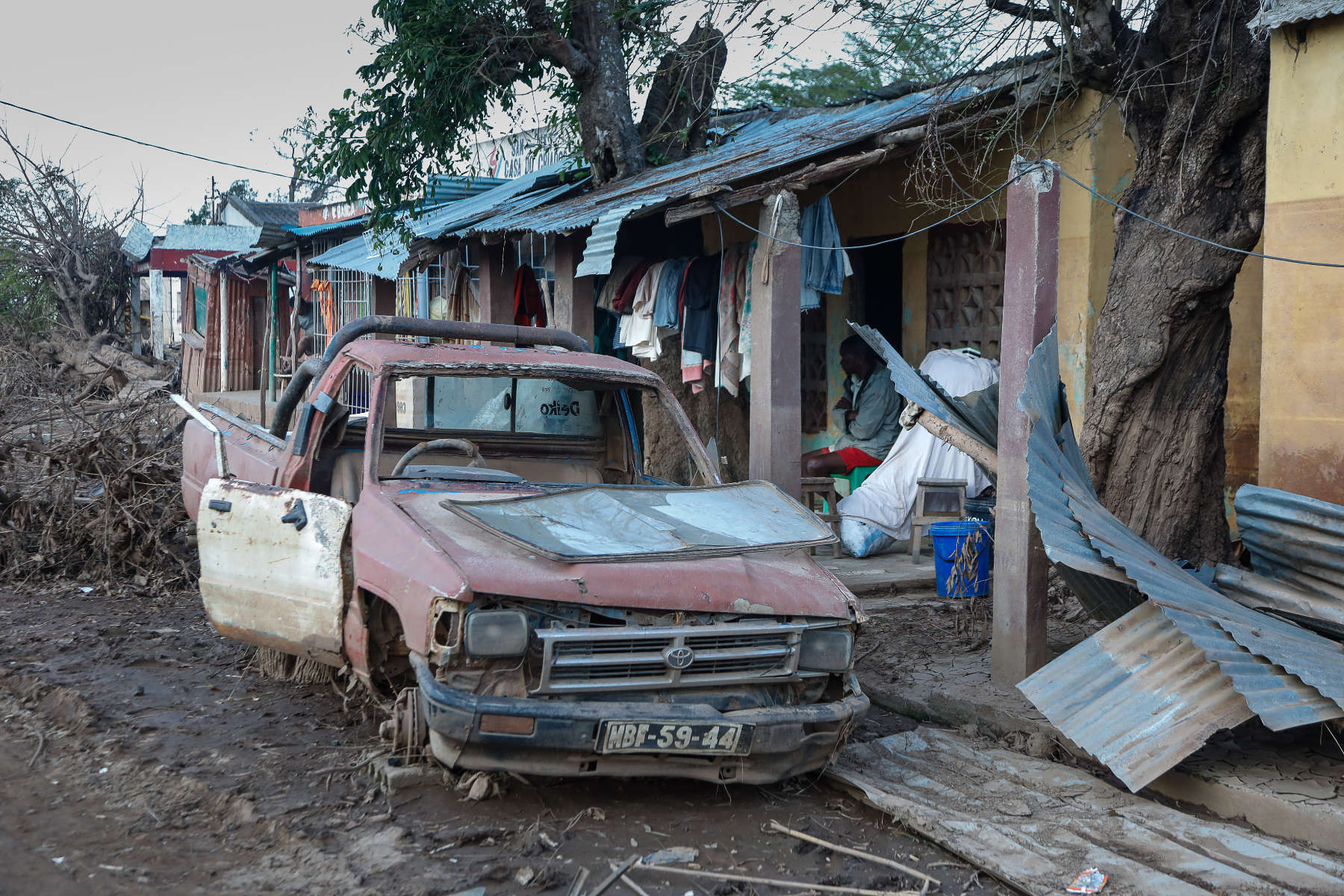 Über eine Woche waren wir unterwegs in dem verwüsteten Land, haben mit Menschen gesprochen, die im Hochwasser alles verloren haben. Fast alle Dächer (auch in der Stadt) wurden durch den Zyklon abgedeckt. Die Lehmhütten der Armen wurden fast vollständig zerstört. Die Dörfer und Felder sind überflutet, die Hauptstraße nach Maputo war an drei Stellen weggespült worden. Nach der notdürftigen Reparatur der Hauptlebensader ist die Straße jedoch stellenweise nur eine Spur befahrbar. Es gibt kein Trinkwasser und keinen Strom. Viele Ortschaften sind noch immer von der Außenwelt abgeschnitten. Tausende harren in Zeltstädten aus. Erste Fälle von Cholera verschärfen die Situation dramatisch. Insgesamt 3000 Schulen wurden teilweise oder ganz zerstört, hunderte von Healthposts ebenfalls. Eine halbe Million Menschen sind obdachlos geworden.