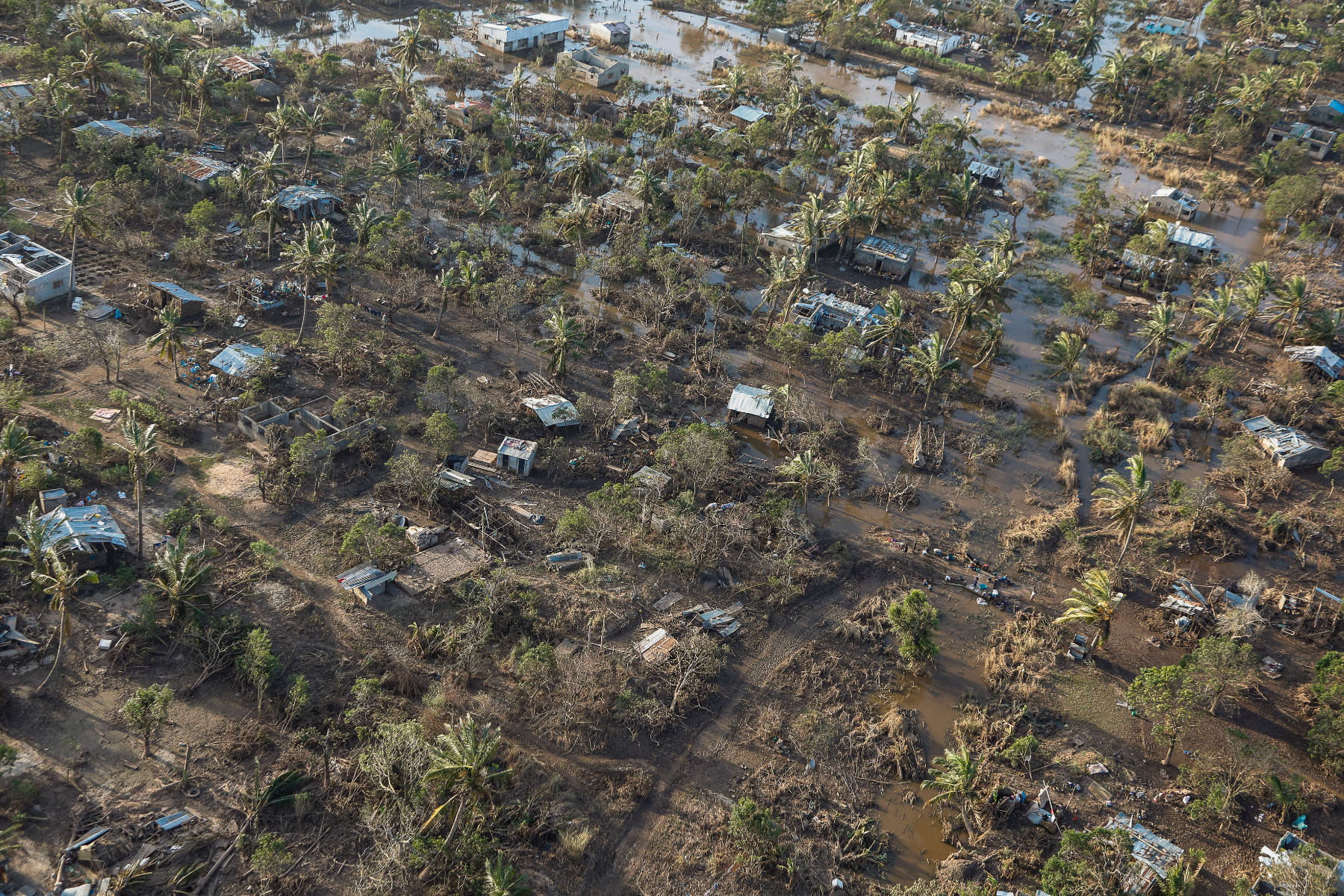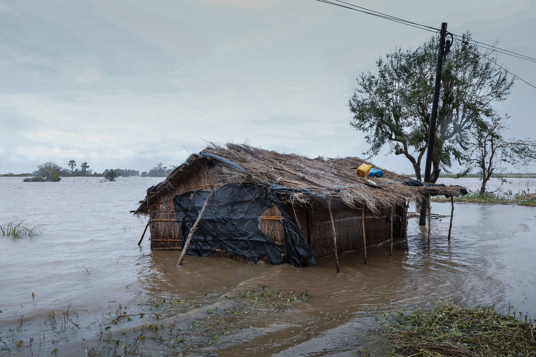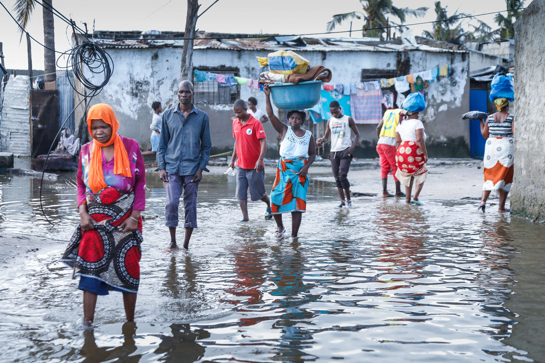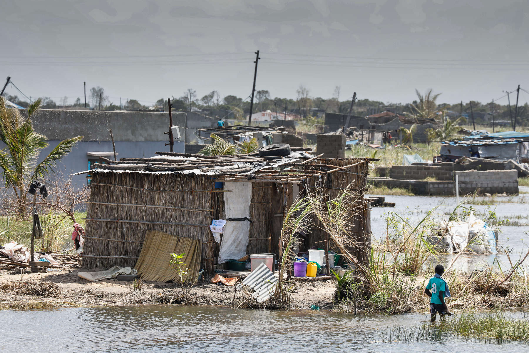 Über eine Woche waren wir unterwegs in dem verwüsteten Land, haben mit Menschen gesprochen, die im Hochwasser alles verloren haben. Fast alle Dächer (auch in der Stadt) wurden durch den Zyklon abgedeckt. Die Lehmhütten der Armen wurden fast vollständig zerstört. Die Dörfer und Felder sind überflutet, die Hauptstraße nach Maputo war an drei Stellen weggespült worden. Nach der notdürftigen Reparatur der Hauptlebensader ist die Straße jedoch stellenweise nur eine Spur befahrbar. Es gibt kein Trinkwasser und keinen Strom. Viele Ortschaften sind noch immer von der Außenwelt abgeschnitten. Tausende harren in Zeltstädten aus. Erste Fälle von Cholera verschärfen die Situation dramatisch. Insgesamt 3000 Schulen wurden teilweise oder ganz zerstört, hunderte von Healthposts ebenfalls. Eine halbe Million Menschen sind obdachlos geworden.